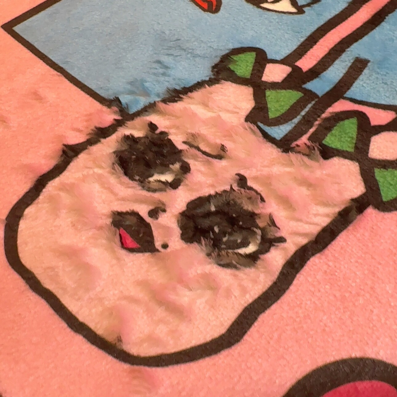 흰색의 완성된 극세사의 블랭킷 위에 인쇄되기 때문에