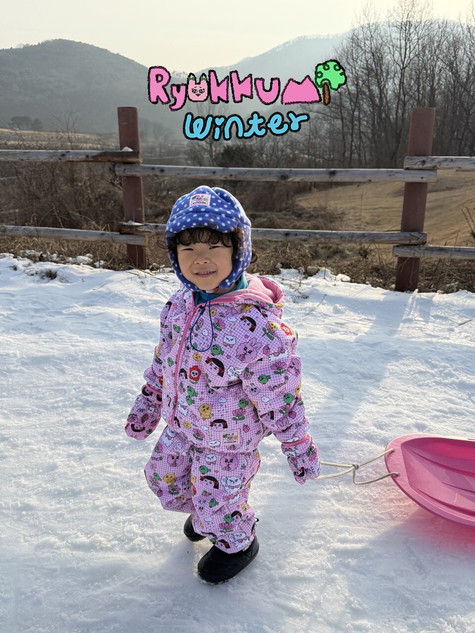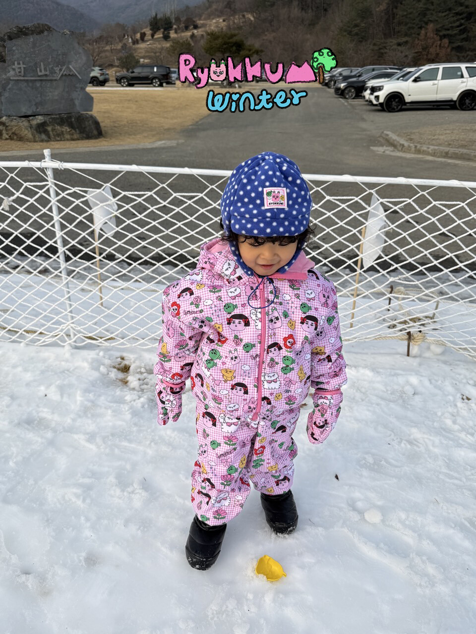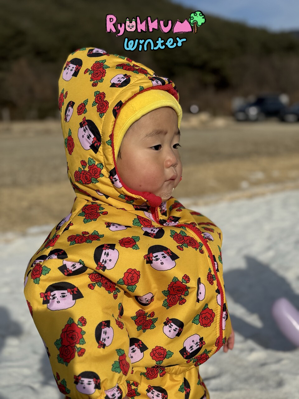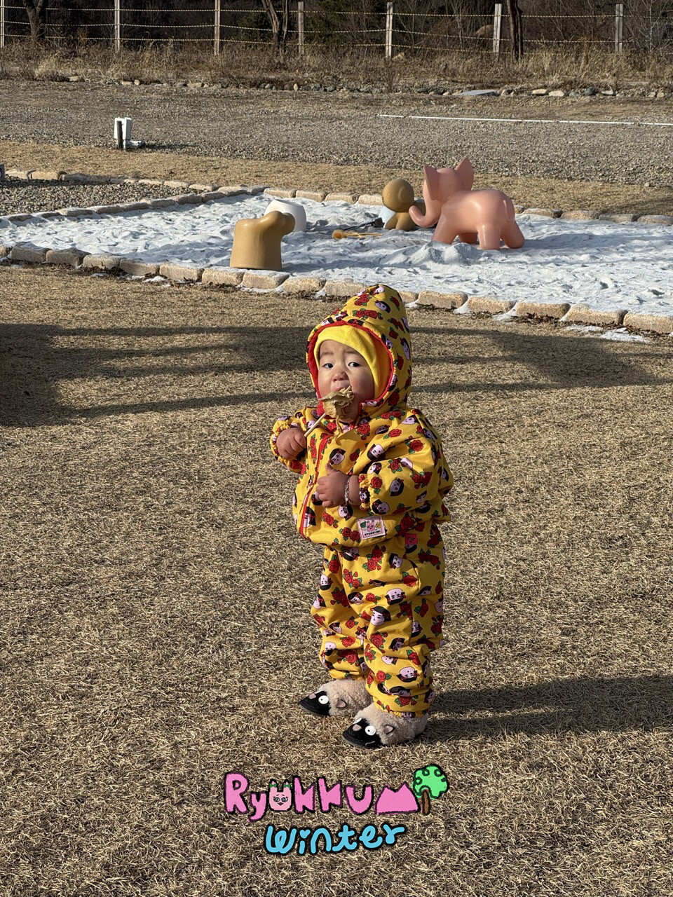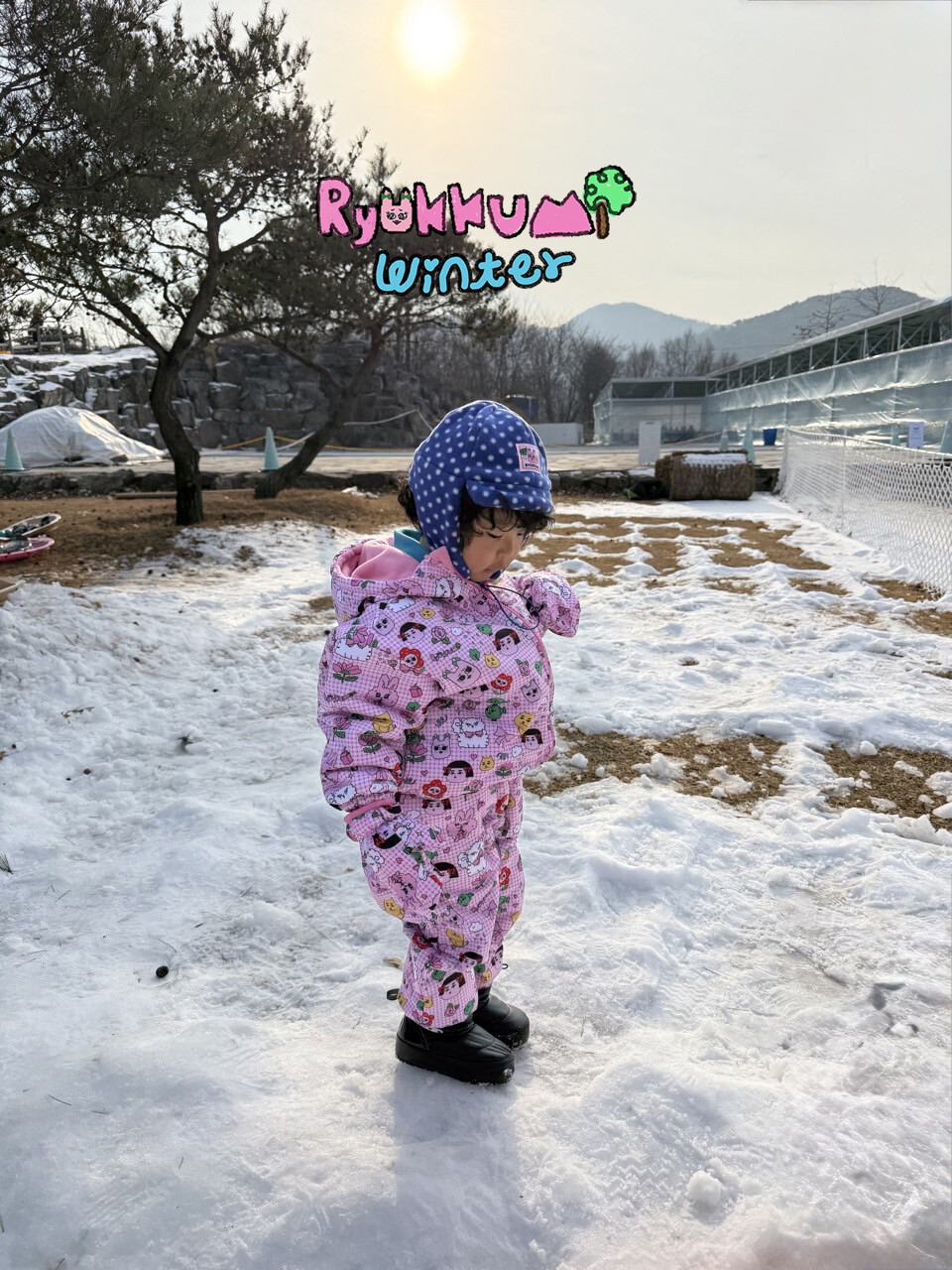 눈밭에서 겨울들판에서 데굴데굴 굴러다녀도 허리에 바람 안들어오는 멜빵바지예요