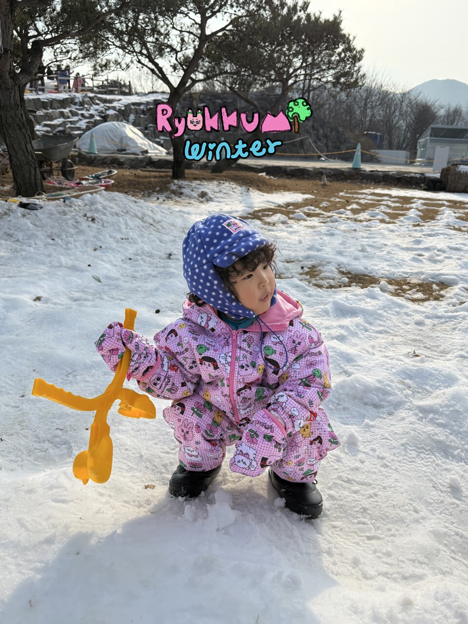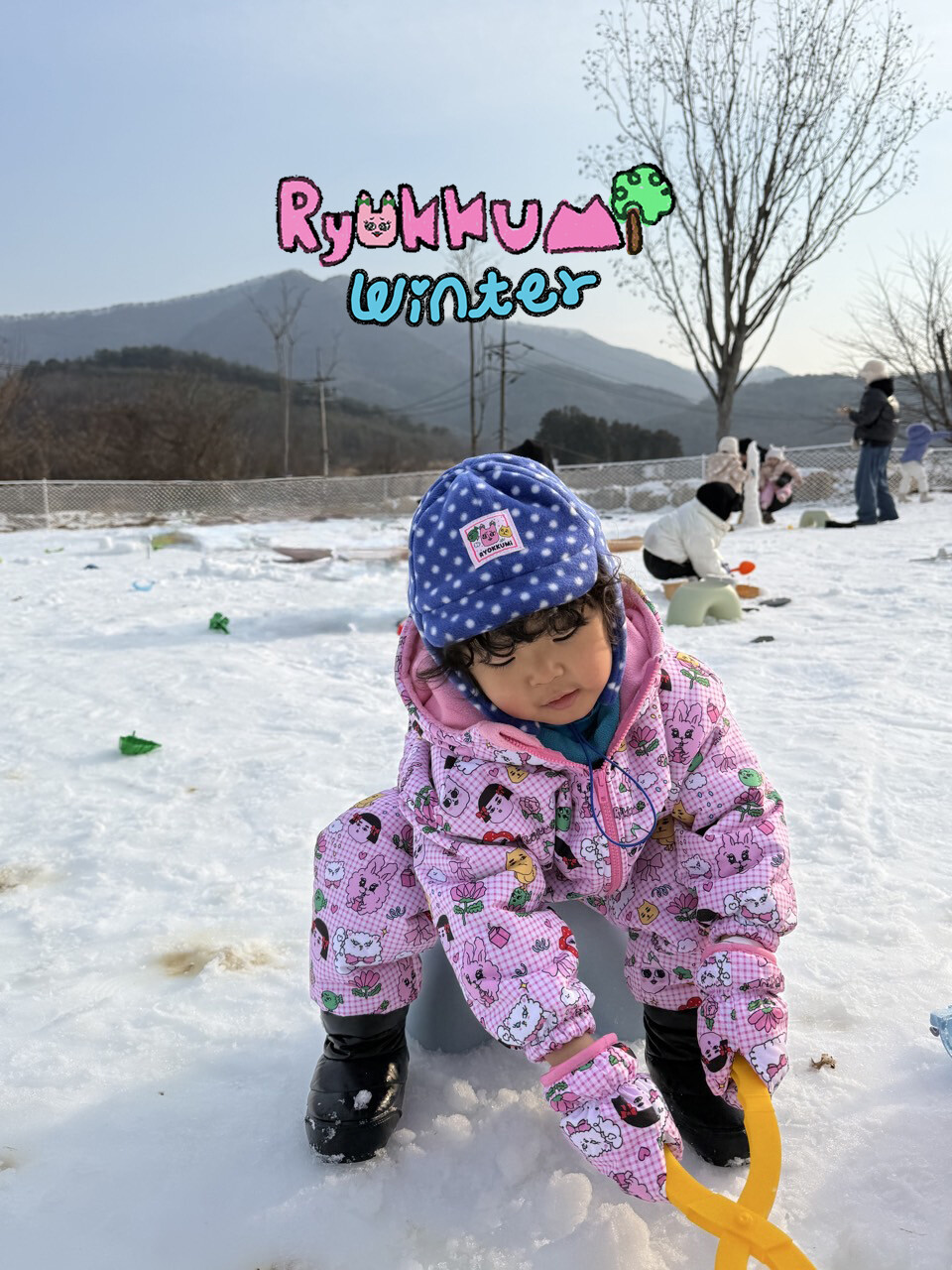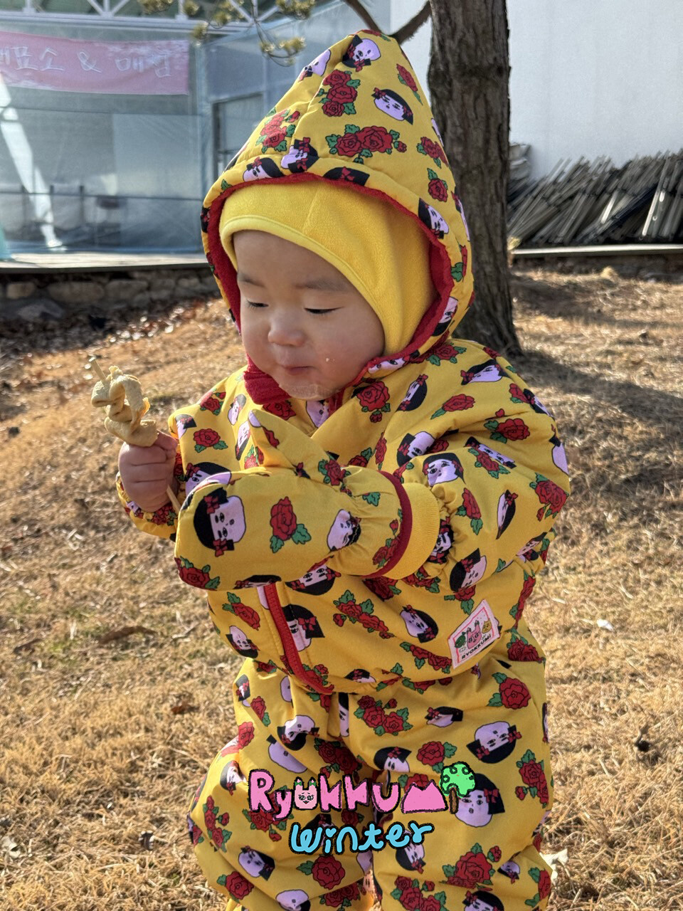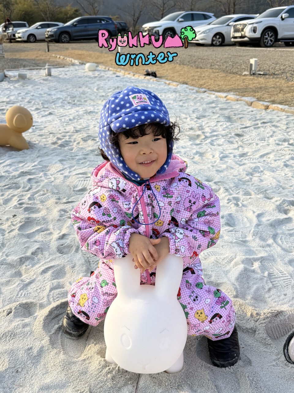 눈밭에서 겨울들판에서 데굴데굴 굴러다녀도 허리에 바람 안들어오는 멜빵바지예요