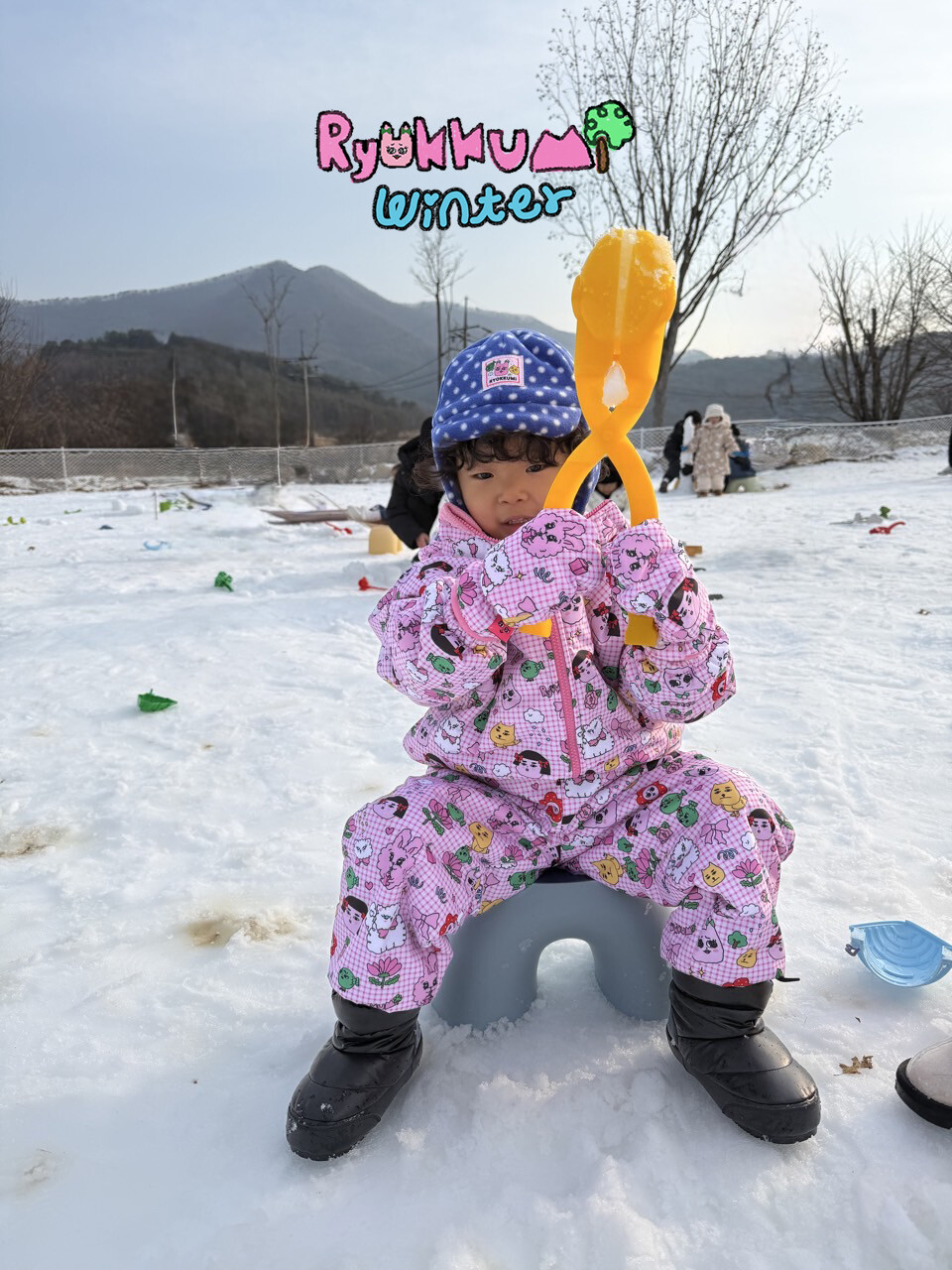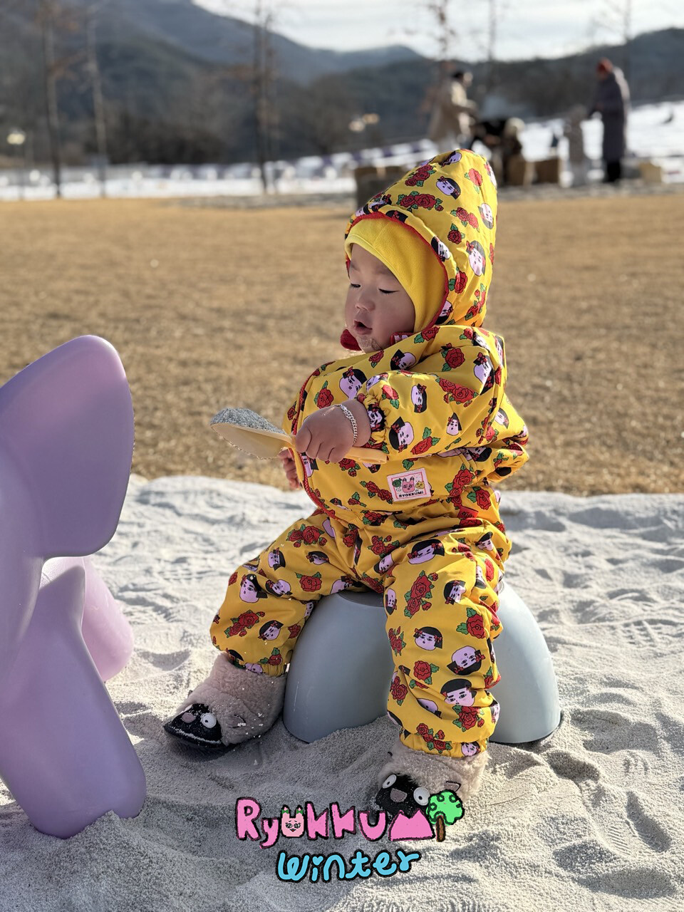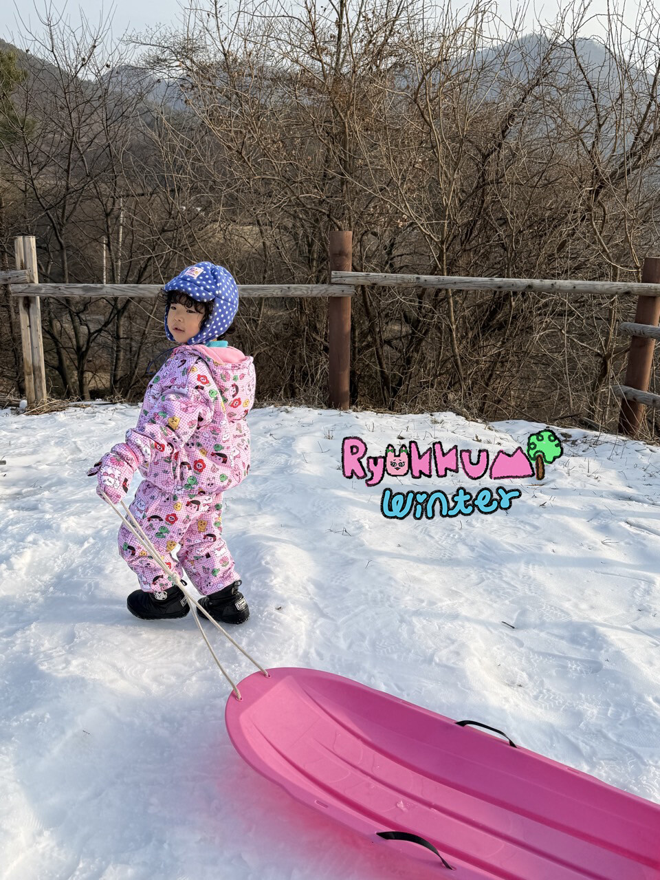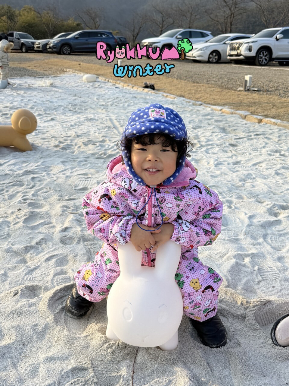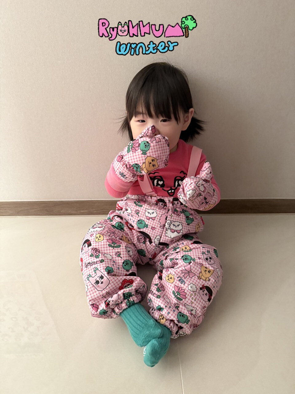 눈밭에서 겨울들판에서 데굴데굴 굴러다녀도 허리에 바람 안들어오는 멜빵바지예요