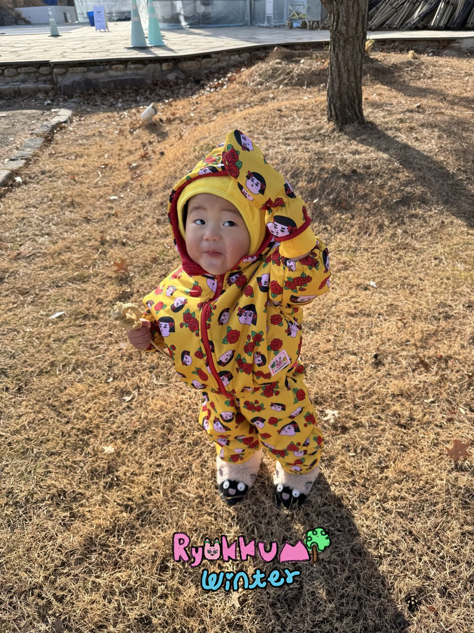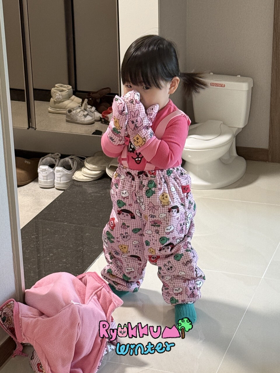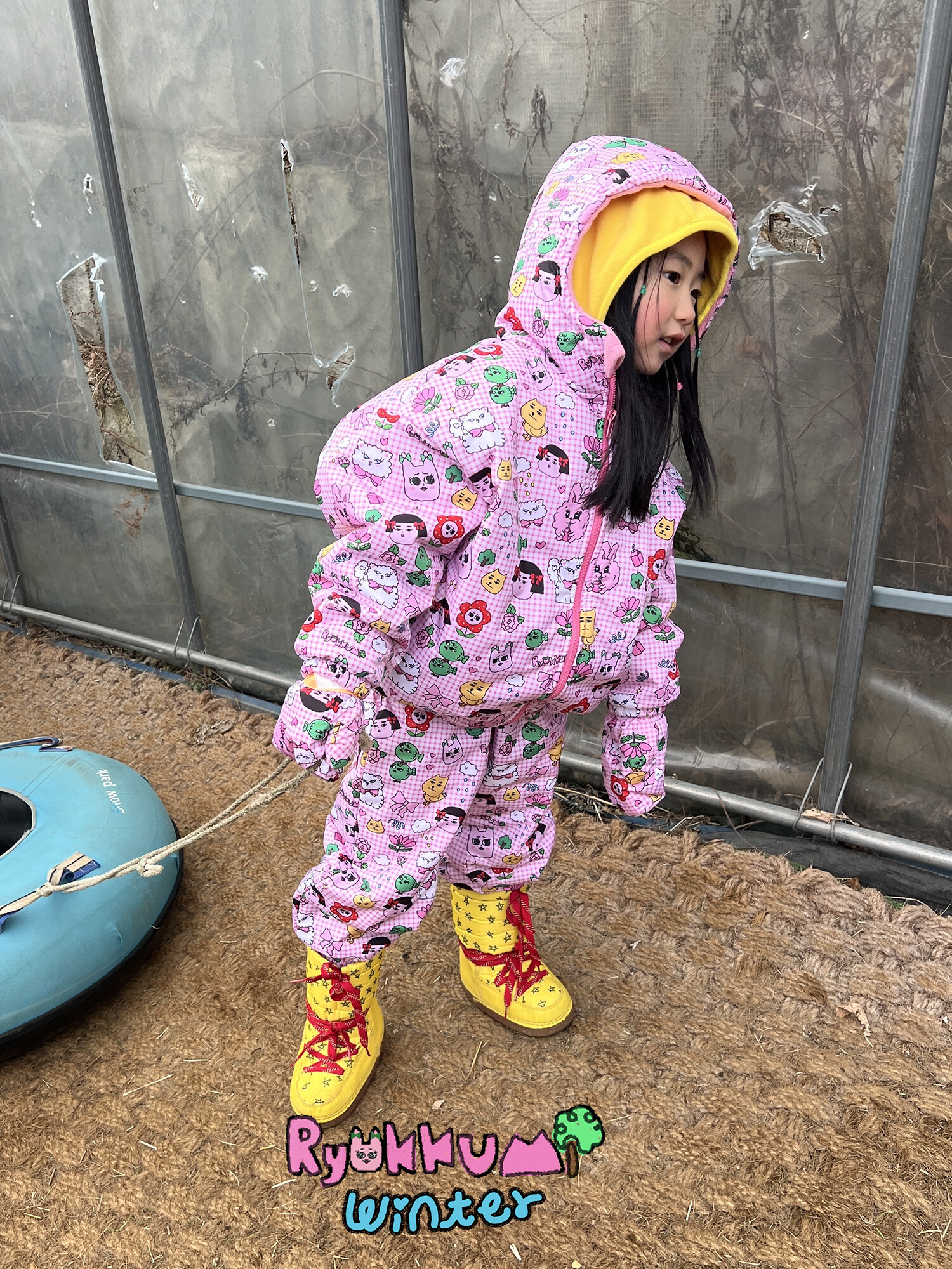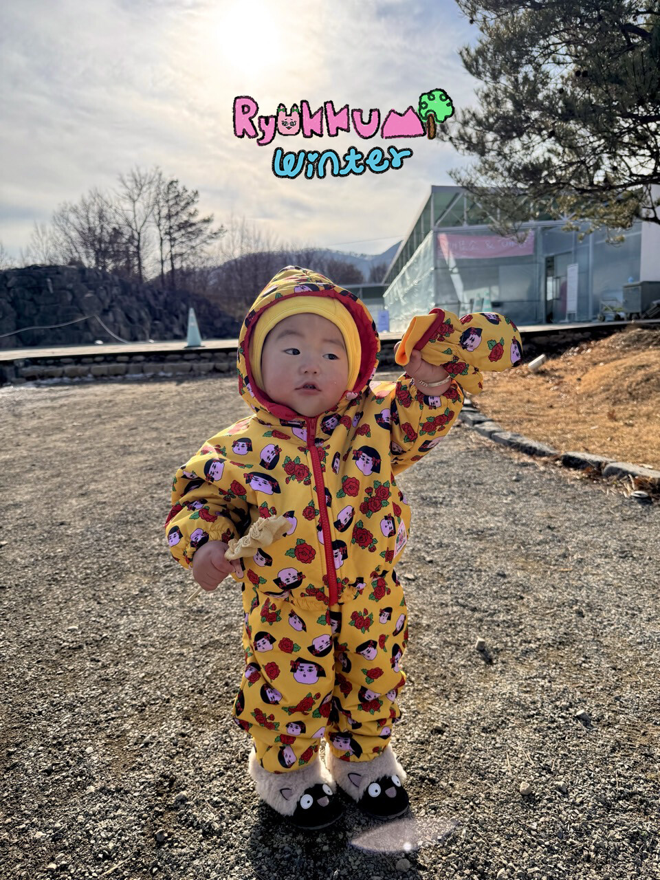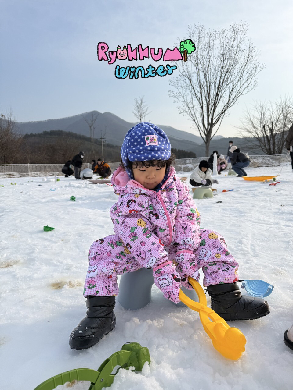눈밭에서 겨울들판에서 데굴데굴 굴러다녀도 허리에 바람 안들어오는 멜빵바지예요