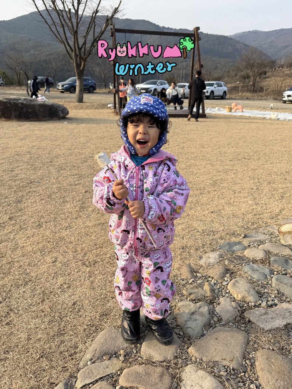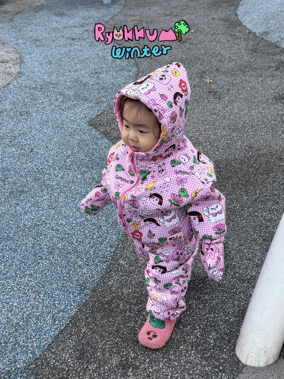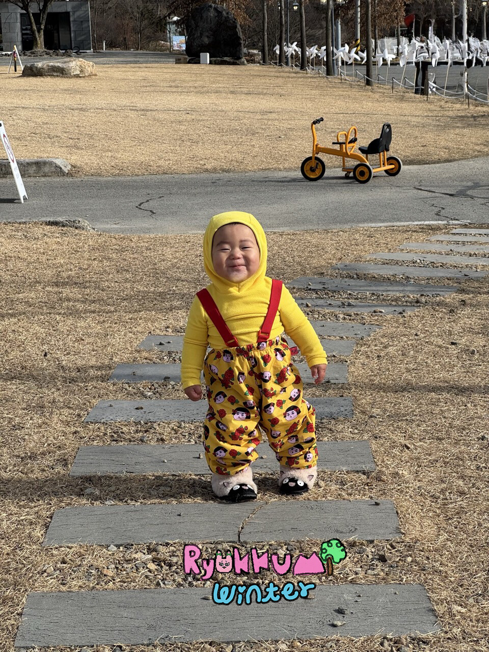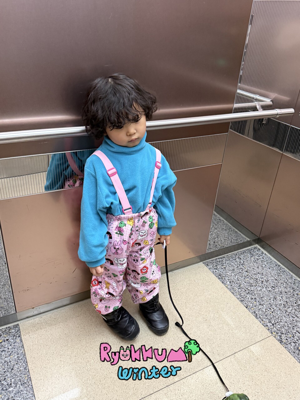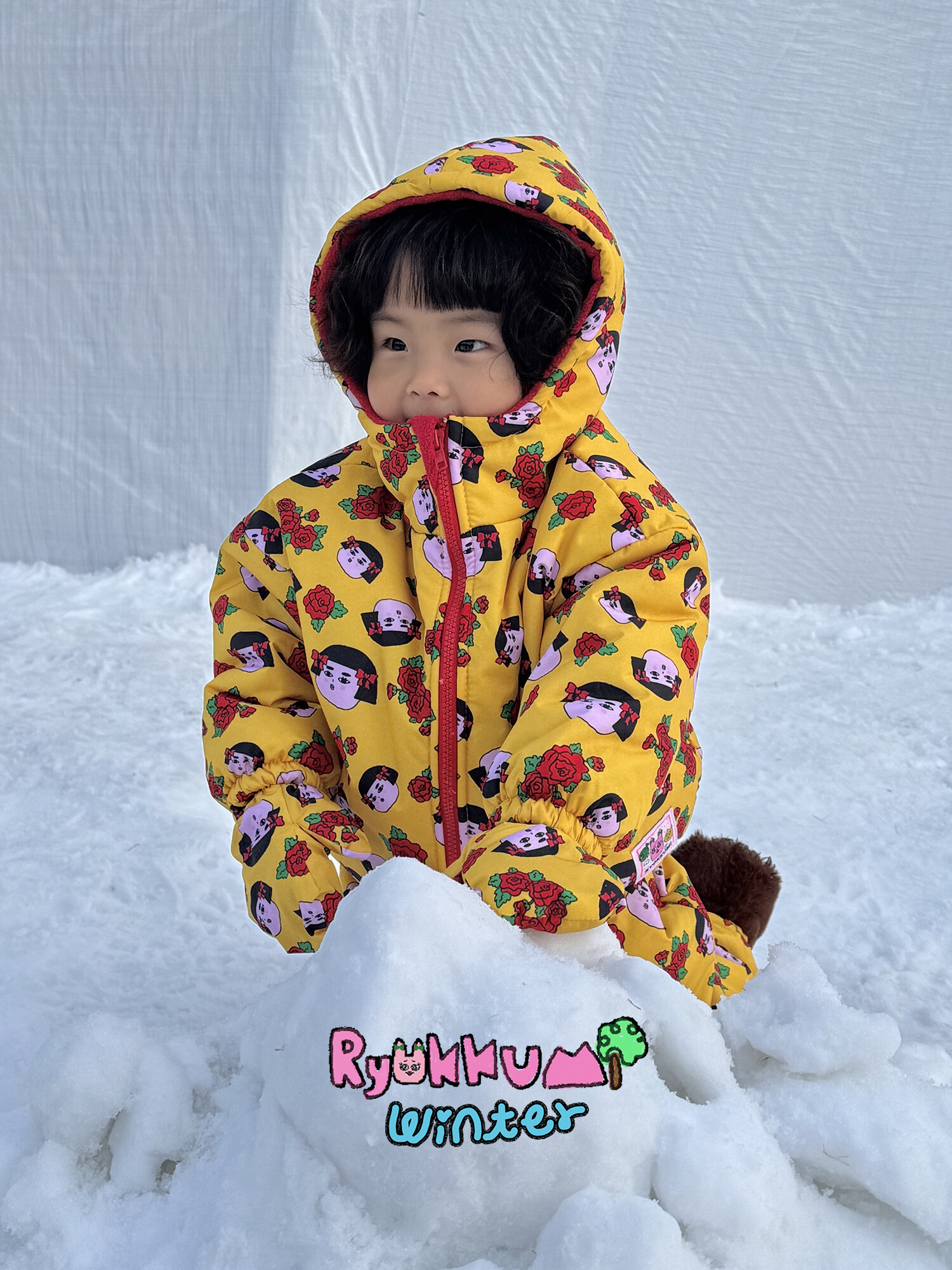 눈밭에서 겨울들판에서 데굴데굴 굴러다녀도 허리에 바람 안들어오는 멜빵바지예요