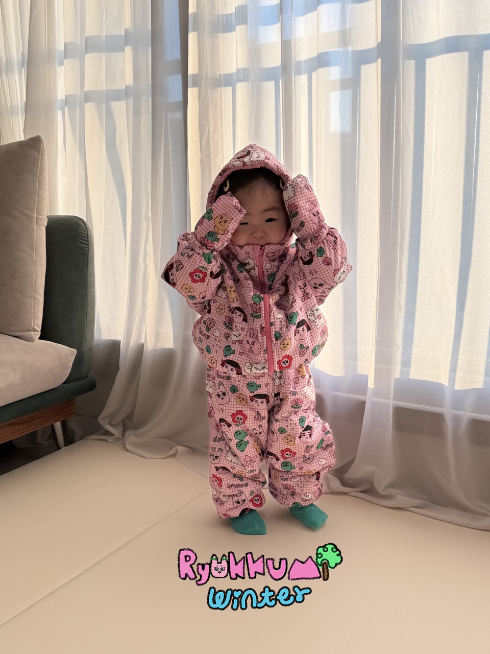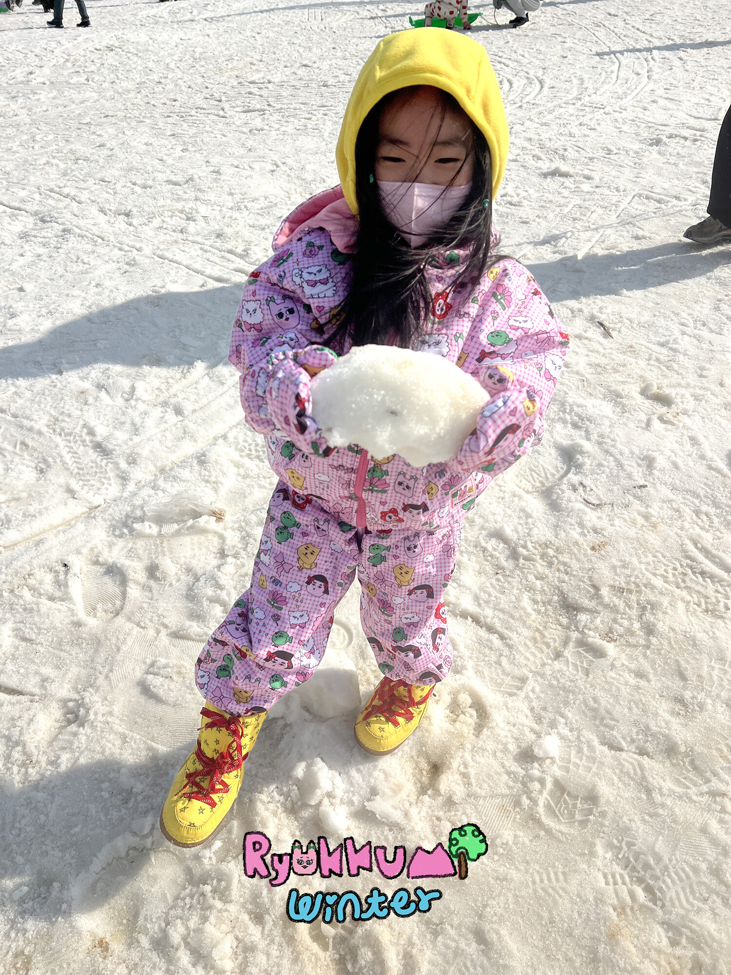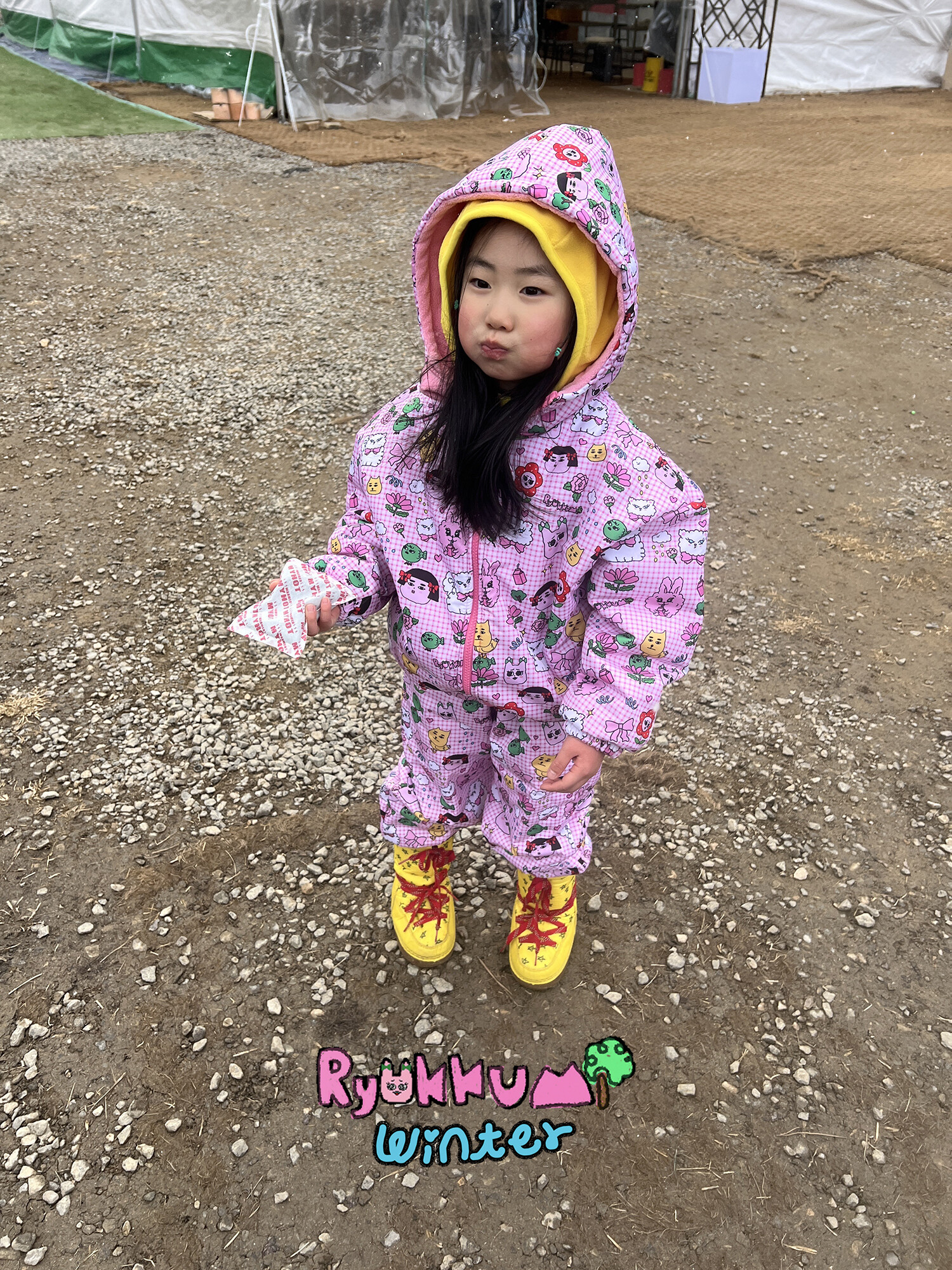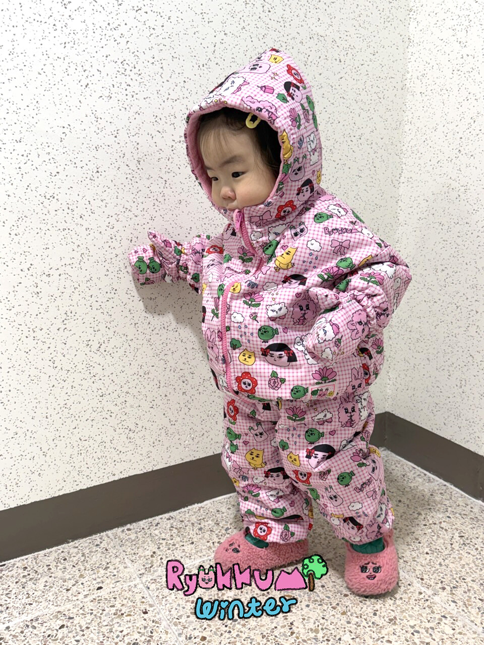 눈밭에서 겨울들판에서 데굴데굴 굴러다녀도 허리에 바람 안들어오는 멜빵바지예요