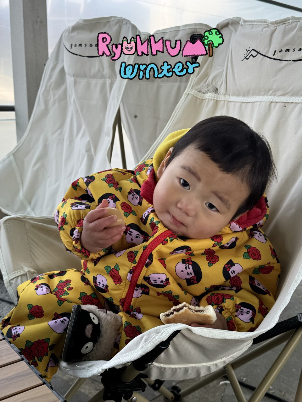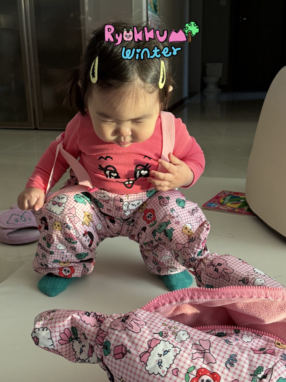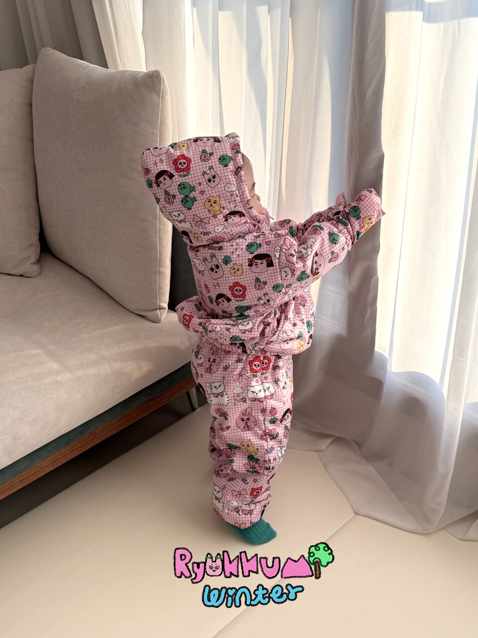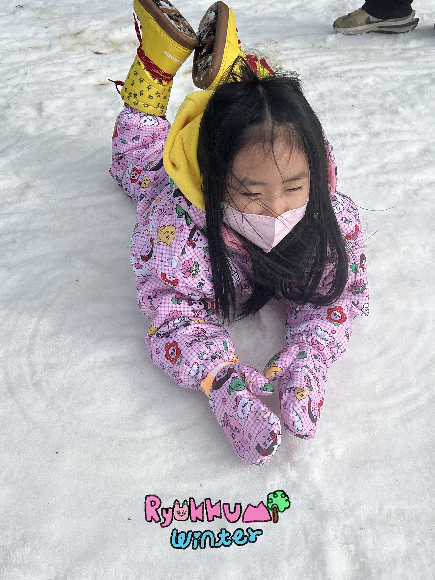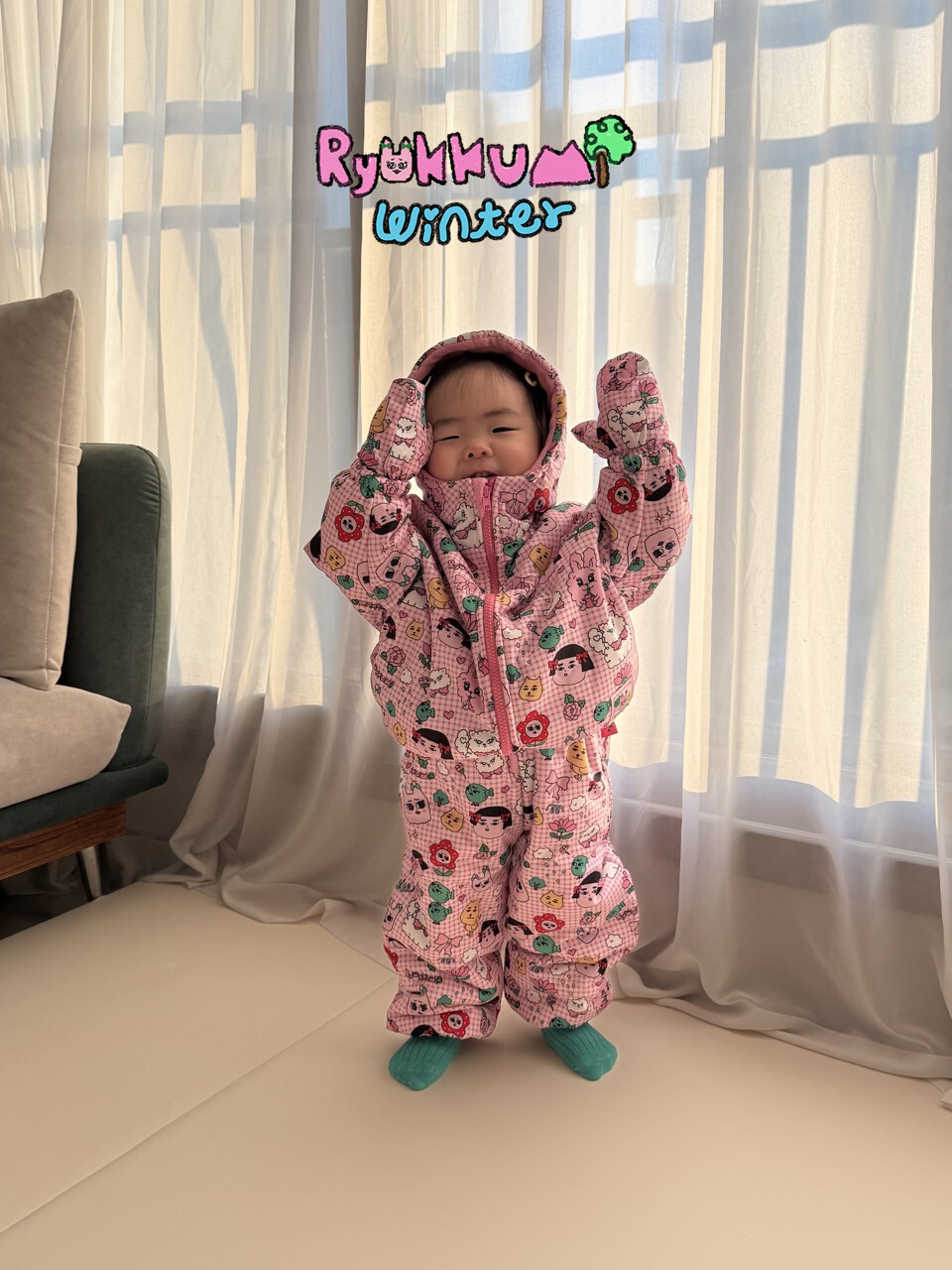 눈밭에서 겨울들판에서 데굴데굴 굴러다녀도 허리에 바람 안들어오는 멜빵바지예요