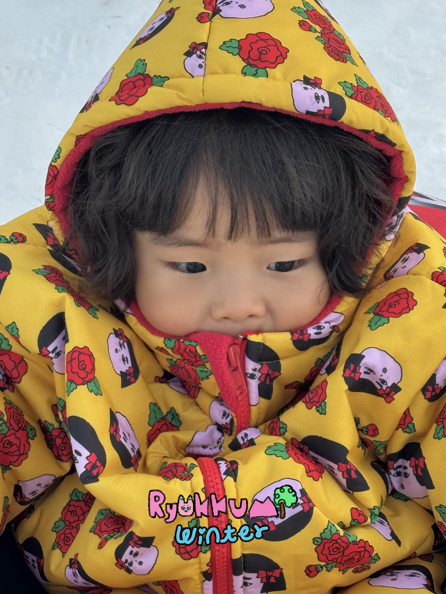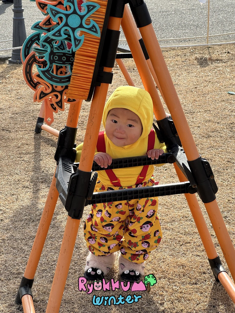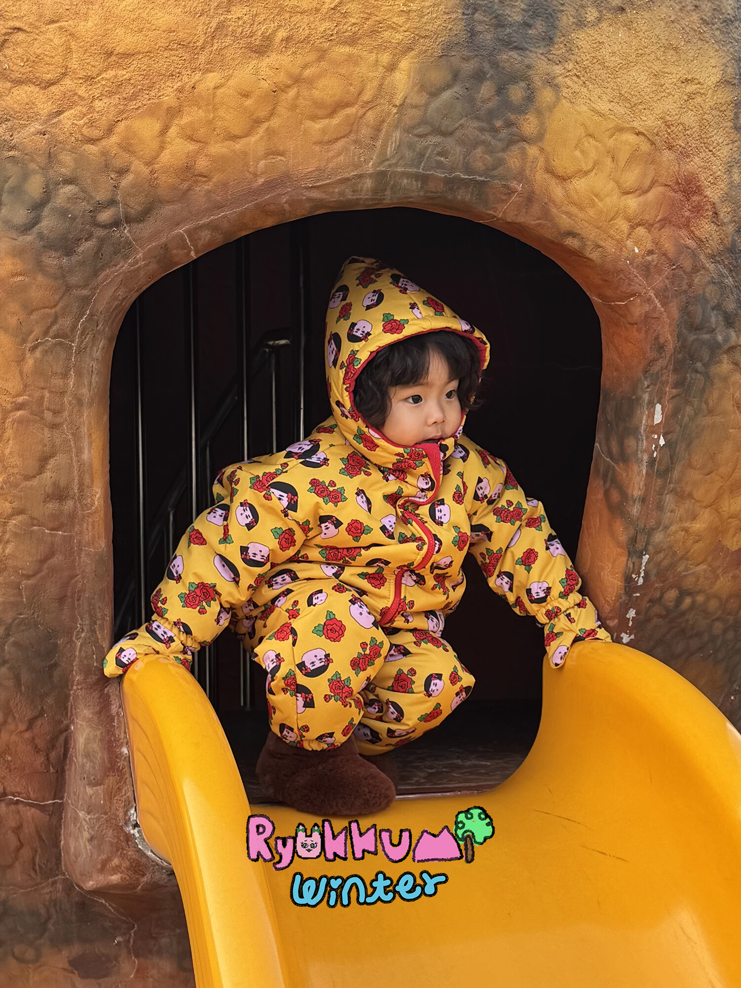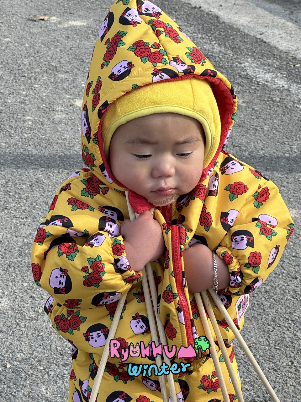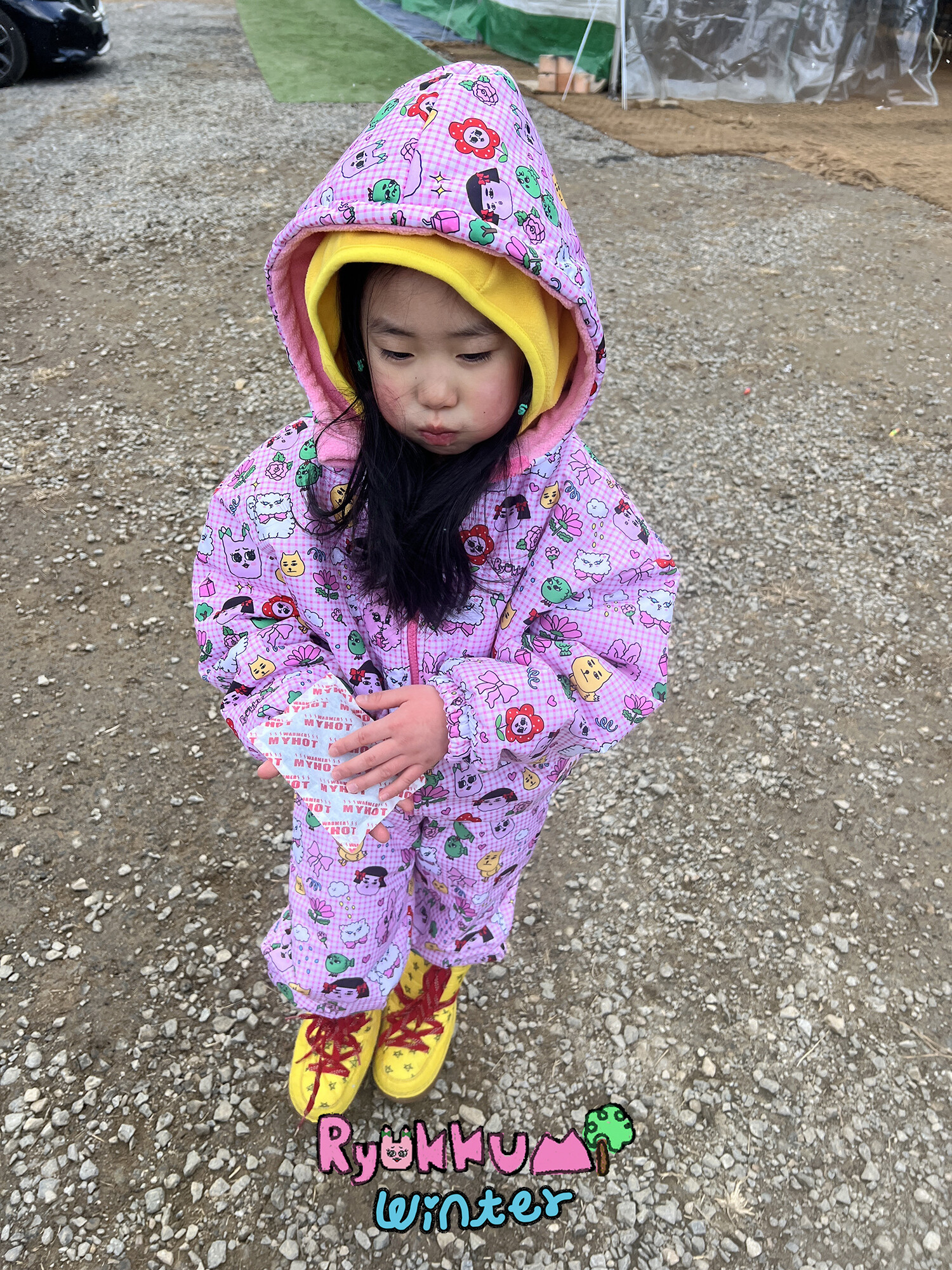 눈밭에서 겨울들판에서 데굴데굴 굴러다녀도 허리에 바람 안들어오는 멜빵바지예요